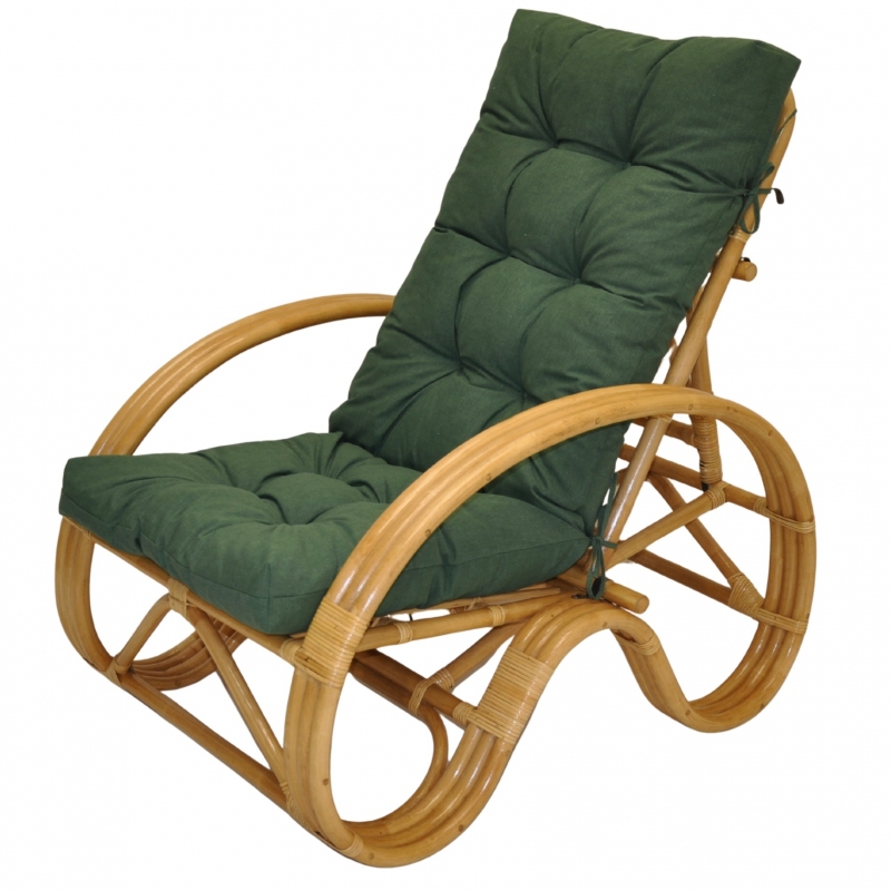 RATANOVÉ KŘESLO POLOHOVACÍ MEDOVÉ POLSTR TMAVĚ ZELENÝ MELÍR