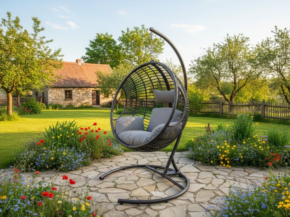 - Závěsná konstrukce se snadným vstupem poskytuje závěsnému křeslu solidní stabilitu.